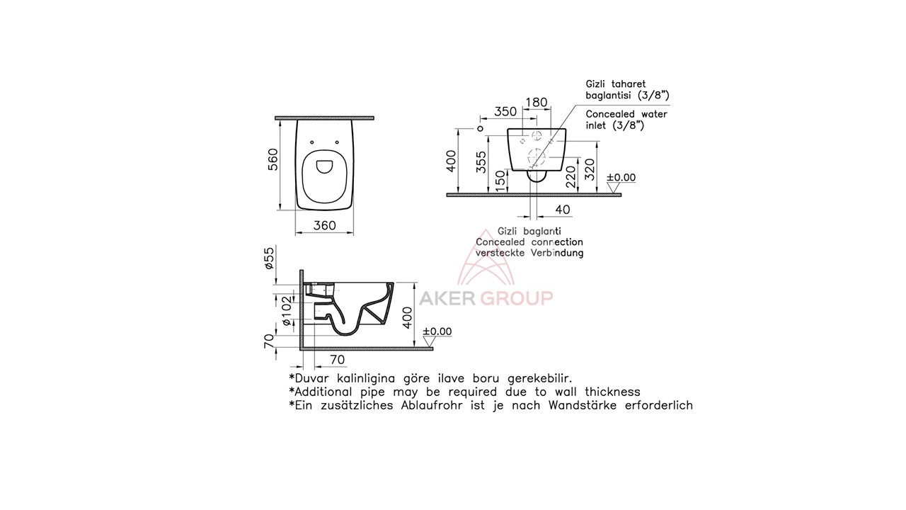 Klozet yerden yüksekliği: 400 mm